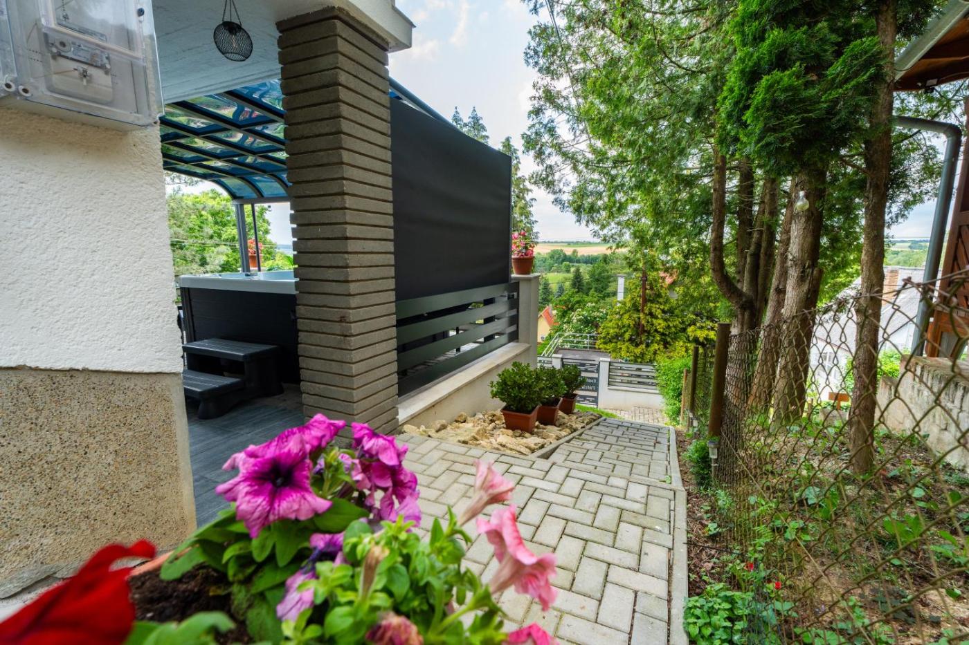 Boasting air-conditioned accommodation with a patio, Erdőszéli Házikó szaunával és jakuzzival is situated in Magyarhertelend. This property offers access to a balcony, free private parking and free WiFi. The apartment has an outdoor fireplace and a sauna.